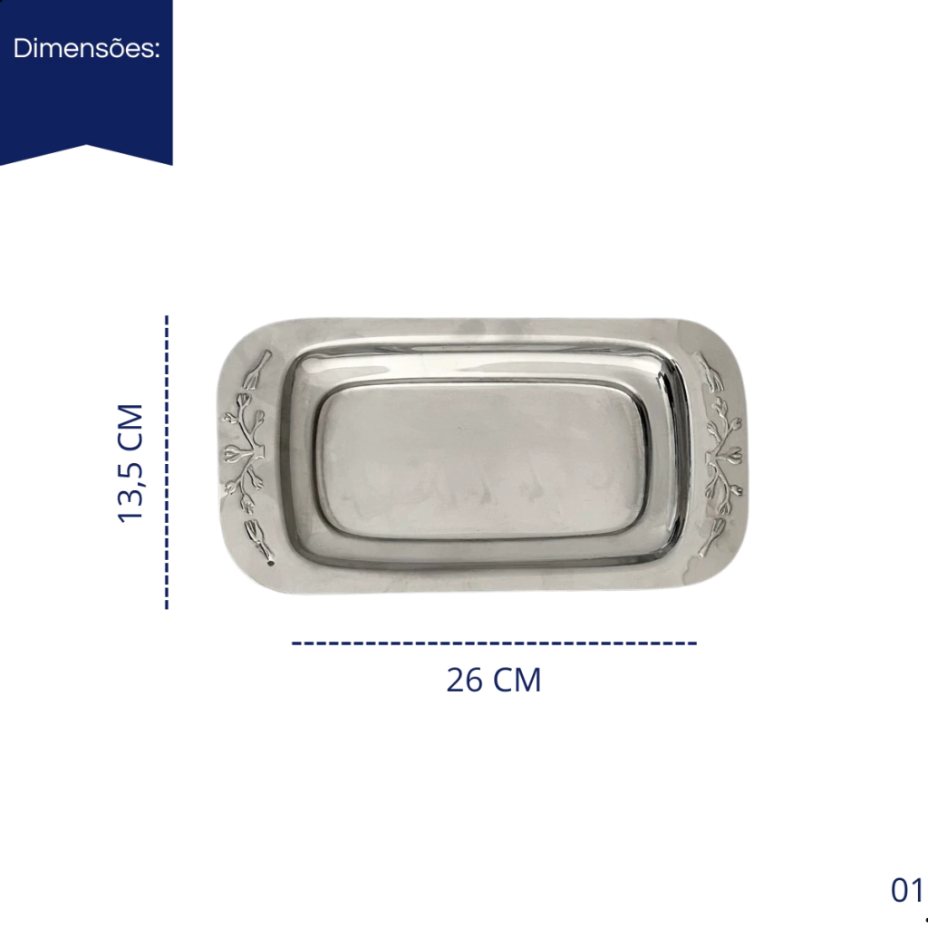 Dimensões travessa pequena (Compr. x Larg. x Alt.): 26 x 13 x 2 cm.