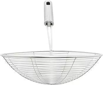 A escumadeira aramada em aço inox funciona de maneira muito parecida com a maioria das escumadeiras tradicionais. O grande diferencial deste modelo está em seu sua estrutura em aramado, que permite com que o óleo seja escorrido de maneira muito mais rápida e eficiente. >> Por que comprar nosso produto? - Produto de excelente qualidade - Alta durabilidade - Envio imediato >>