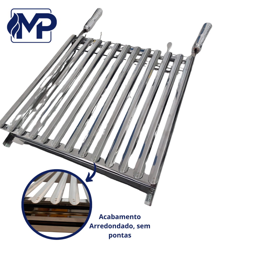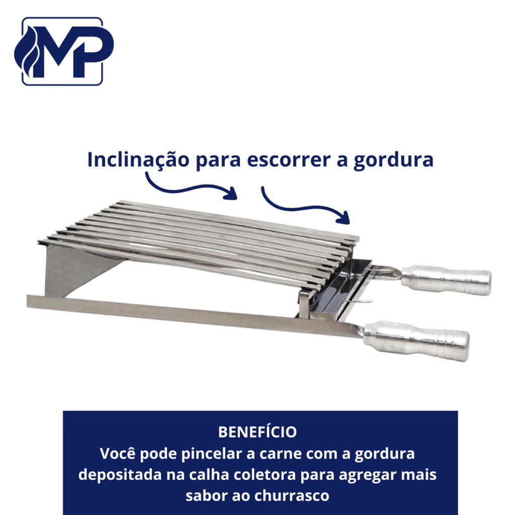 A Grelha possui sistema de canaletas que ajudam a escoar a gordura das carnes até o reservatório evitando o excesso de fumaça e a formação de labaredas.