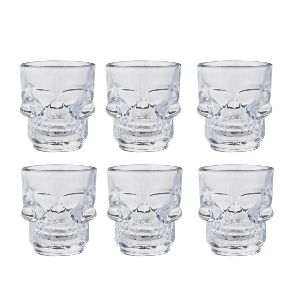 Adicione estilo e personalidade às suas festas e encontros com este incrível jogo de 6 copos de vidro no formato de caveira. Perfeitos para servir doses de vodka, tequila, licor ou outras bebidas, esses copos unem design criativo e funcionalidade em um único produto.
