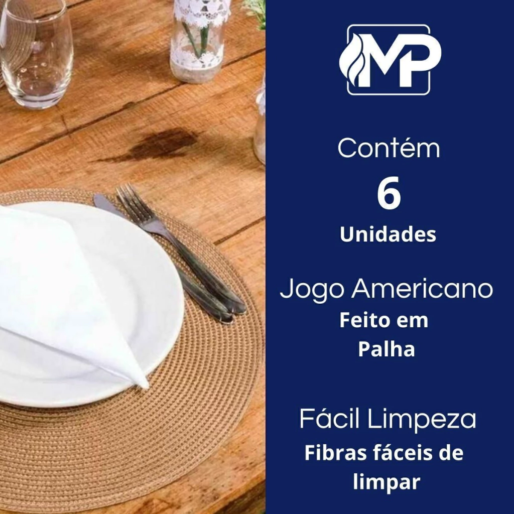 Kit 6 Jogo Americano Palha Redondo