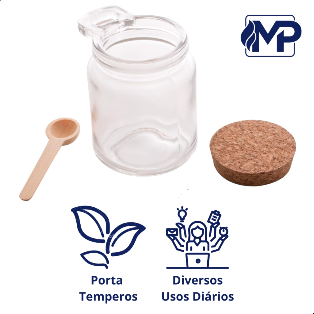 Pote de Vidro, Tampa de Cortiça e Colher de Bambu