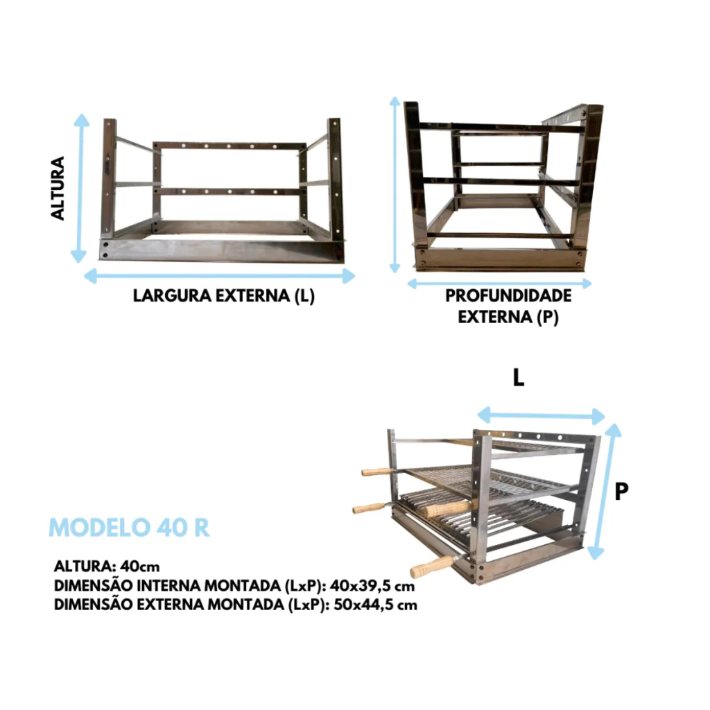 Suporte de Grelhas Ideal para braseiro com "boca" de 45cm de largura e 36cm de profundidade.