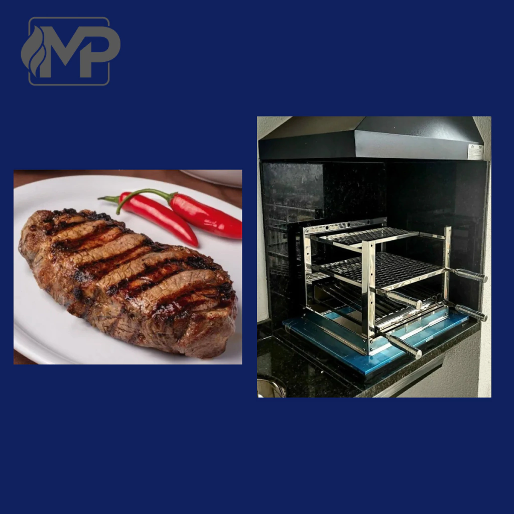 Grelha Argentina - A queridinha dos mestres churrasqueiros, por proporcionar um churrasco sem fumaça e labaredas. A calha coletora de gordura pode ser utilizada para adicionar temperos e pincelar sua carne, deixando-a mais saborosa.