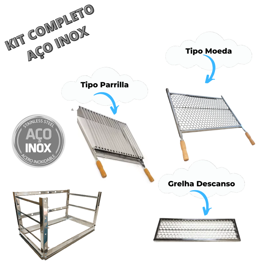 Grelha Argentina - A queridinha dos mestres churrasqueiros, por proporcionar um churrasco sem fumaça e labaredas. A calha coletora de gordura pode ser utilizada para adicionar temperos e pincelar sua carne, deixando-a mais saborosa.
